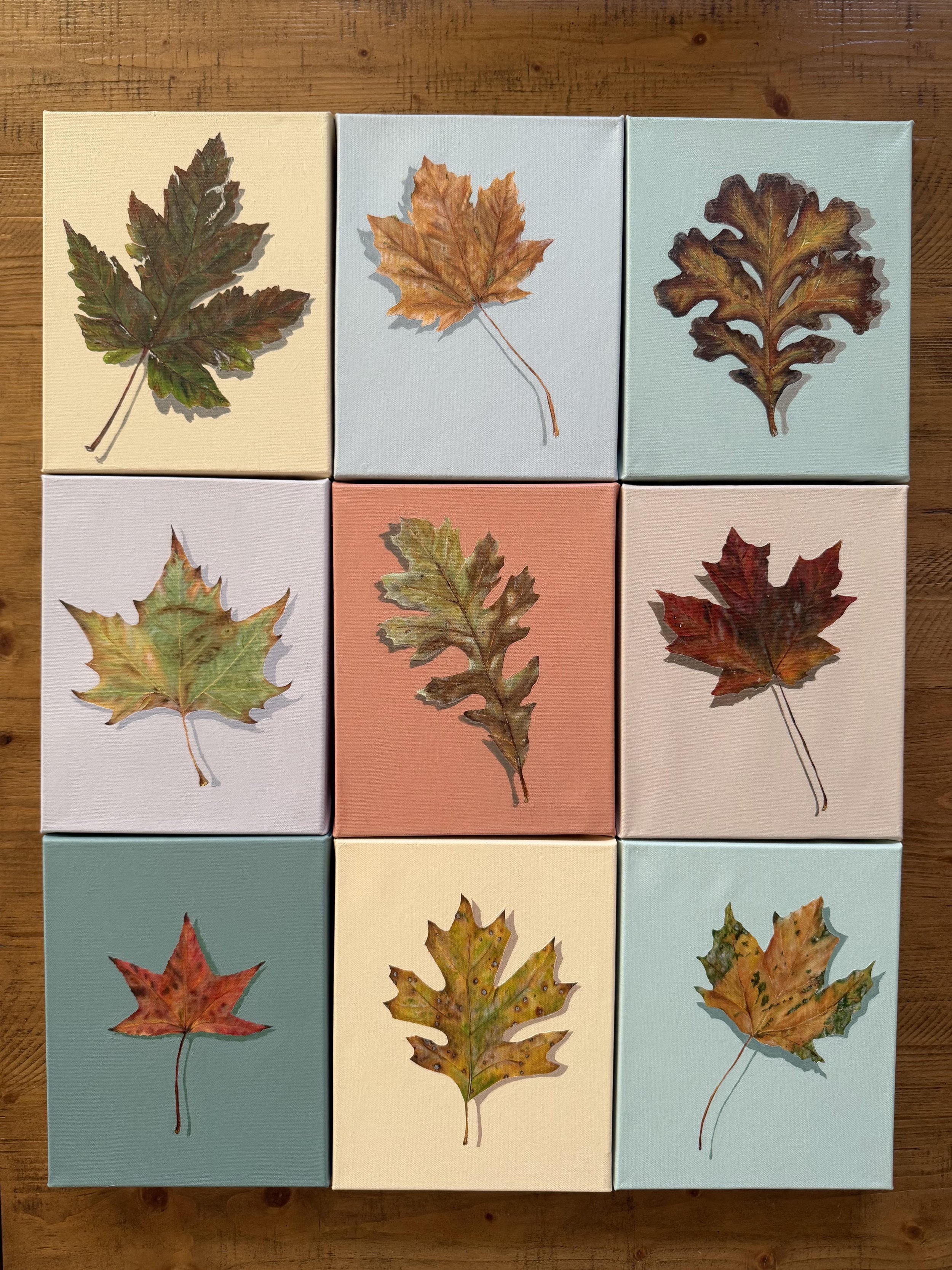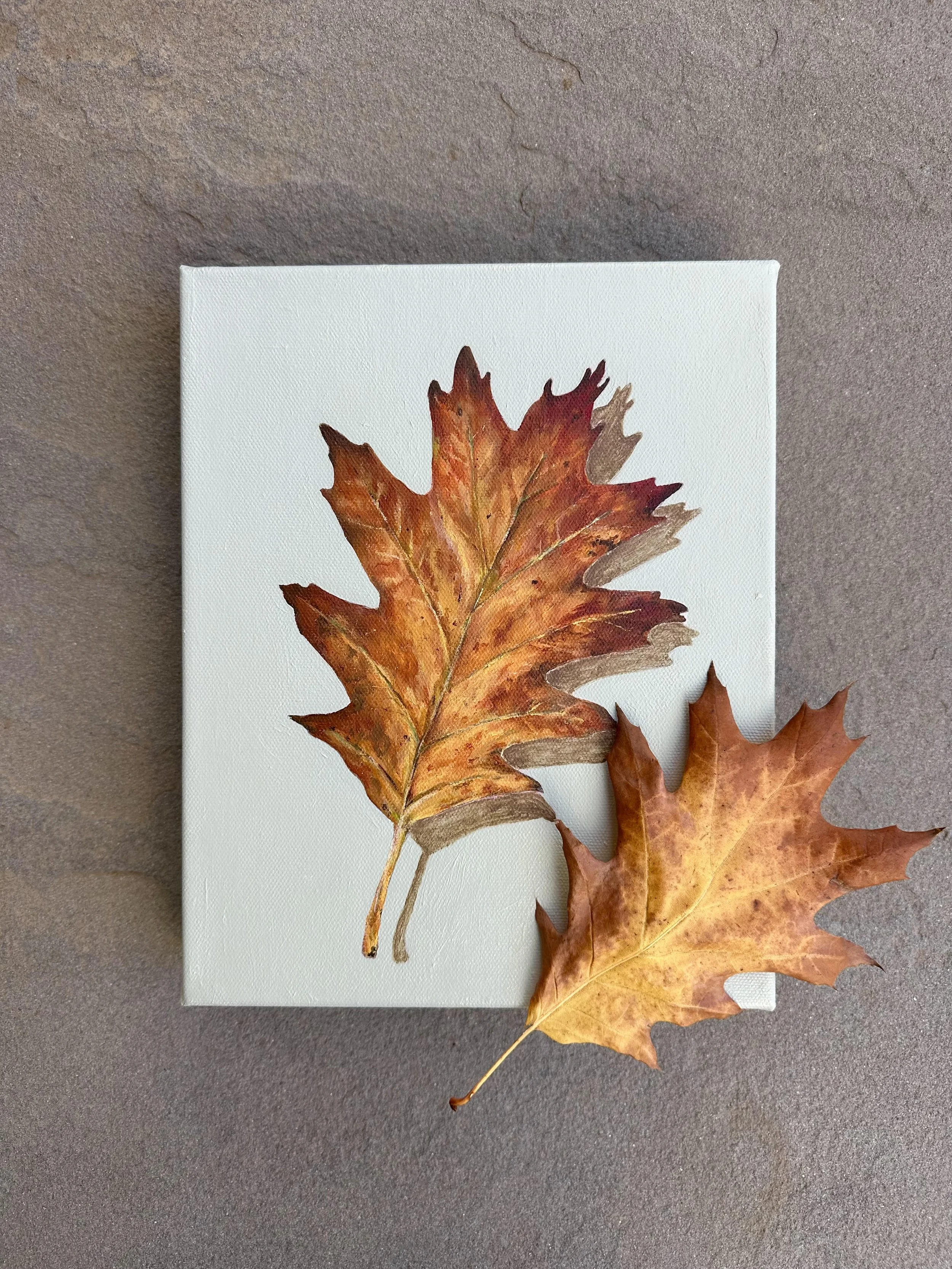 I do a lot of walking. I have three dogs that require an abundance of exercise. We walk rain, snow or shine and typically get about 15k steps in a day. That being said, I spend a lot of time outdoors observing all the things - leaves in particular. All the leaves that I paint are based on actual leaves that I pick up on my walks around both my Sioux Falls, SD and Fort Worth, TX neighborhoods.
