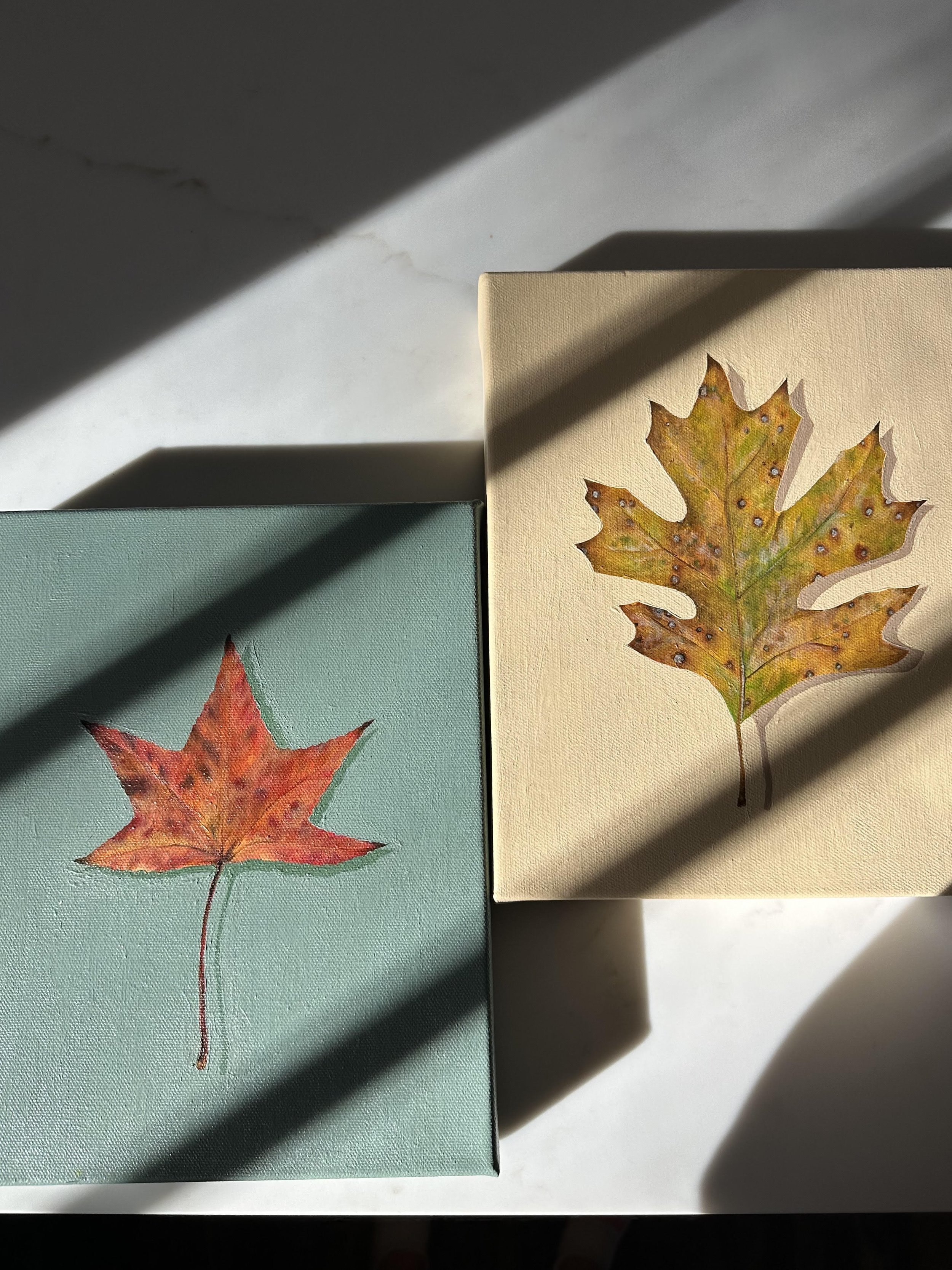 Yes, all the leaves that I paint are life size! They are the actual size and shape of the leaves that I use for inspiration. I try to replicate the leaf as closely as I can because who am I to mess with the beauty that Mother Nature creates?!
