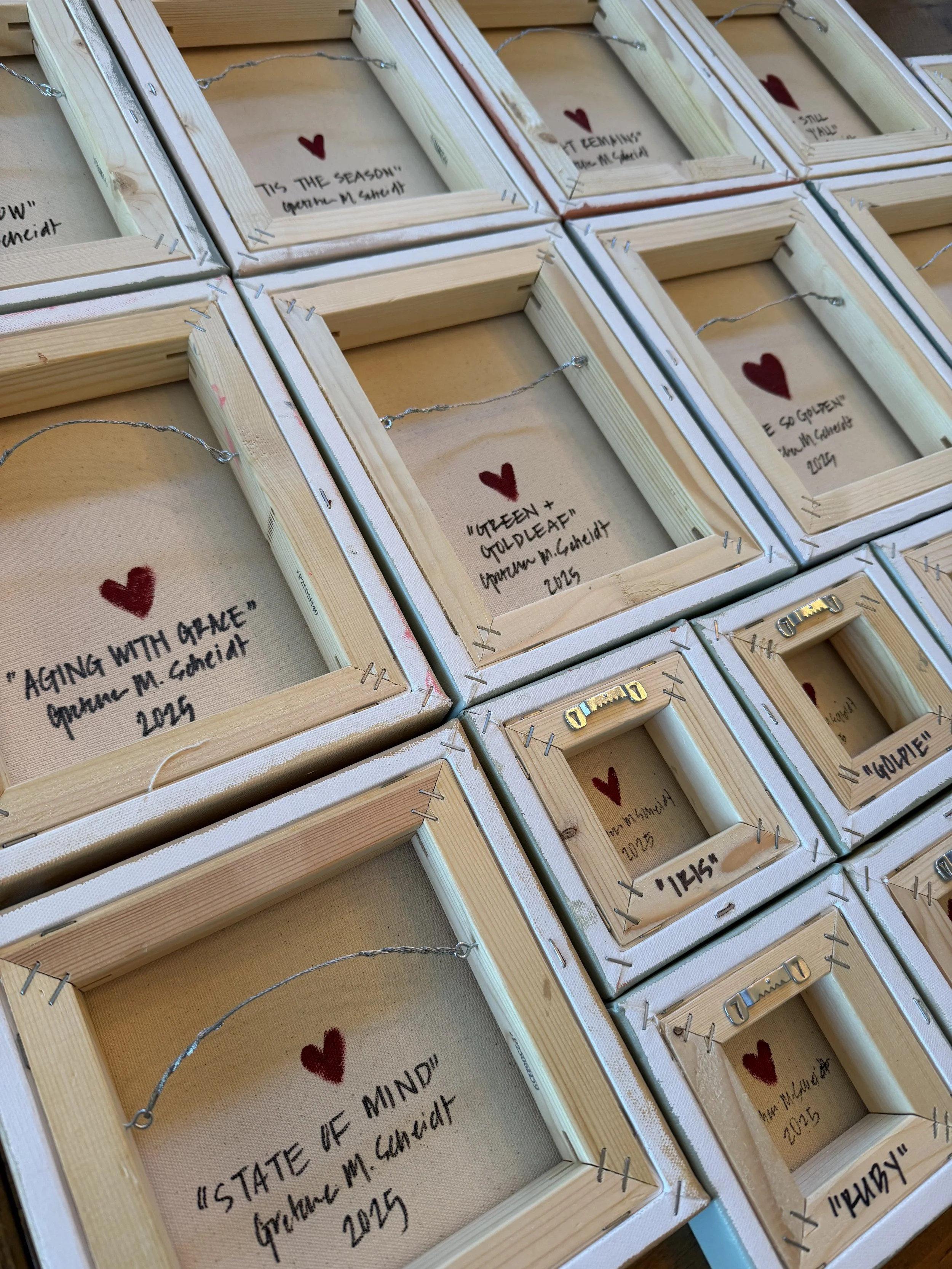 On the back of every piece that I paint, you will find a red heart. That heart is a way for me to honor my incredible dad, Marty Rickers, who passed away on August 18, 2023. He had a heart of gold and was always one of my biggest supports. The red heart is a way to take my dad along with me on my artistic journey.